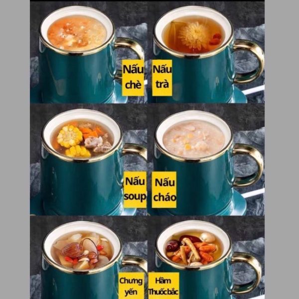 – Cốc chưng yến, hầm sử dụng đế điện hâm nóng từ từ thức ăn giúp giữ nguyên giá trị dinh dưỡng của thức ăn