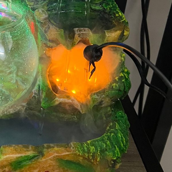 – Đèn đổi 5 màu tượng trưng cho 5 yếu tố Kim, Mộc, Thủy, Hỏa, Thổ giúp cân bằng năng lương, mang lại vận khí tốt lành may mắn. Đèn đổi và và hơi sương khói tạo ra từ máy, tạo cảm giác thư thái như ở trốn bồng lai tiên cảnh.