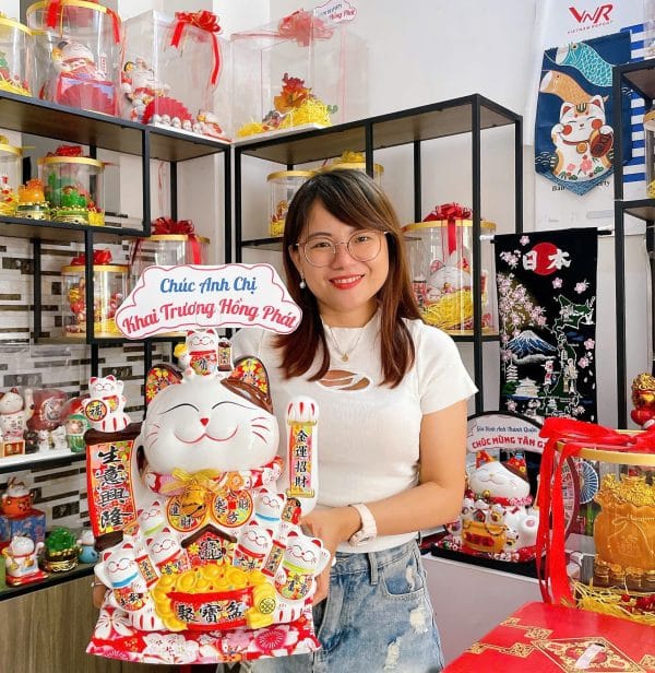 – Chủ Cửa Hàng coi mèo may mắn Maneki Neko là lựa chọn hàng đầu biểu trưng cho sự may mắn, tài lộc và phát đạt. Hơn nữa mèo may mắn có giá trị bền vững, như một người bạn đồng hành, luôn sát cánh cùng ông chủ, bà chủ.