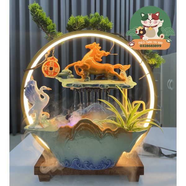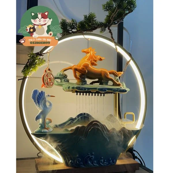 – Thường những người làm kinh doanh mua bán luôn đặt một thác khói trong cửa hàng để cầu mong may mắn. Vòng luân chuyển của dòng nước tượng trưng cho may mắn, tài lộc, thịnh vượng.