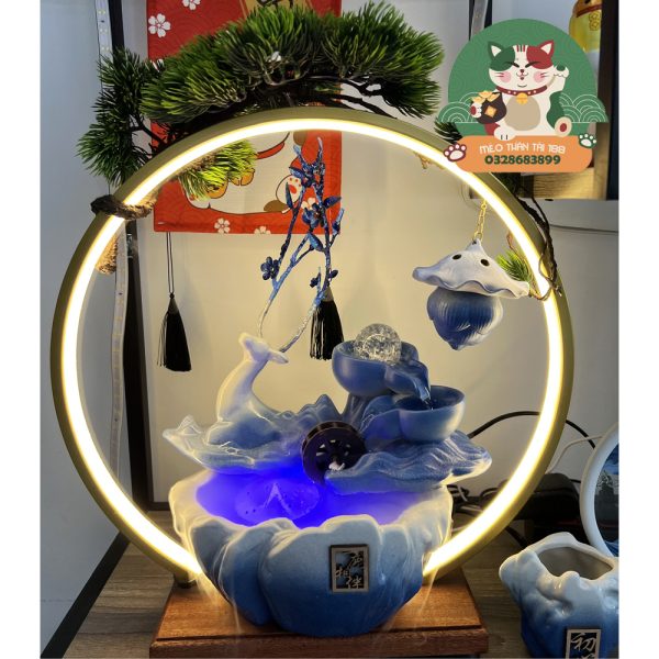 Đài Phun Nước Mini Để Bàn Trang Trí Đèn Led Thư Giãn