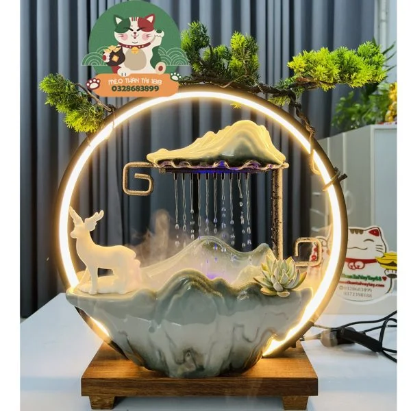 THẦN TÀI Kèm Tiểu Cảnh Thác Nước Hút Tài Lộc, Thịnh Vượng