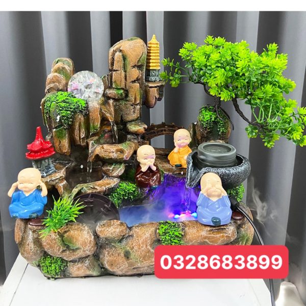 – ĐẶC BIỆT, bộ thác kèm 4 chú tiểu Tứ Không giúp bộ tiểu cảnh thêm thu hút.  Ngoài ra, bạn có thể dùng thêm tạo khói để tạo thêm cảm giác nghệ thuật có thác nước phong thủy tứ không